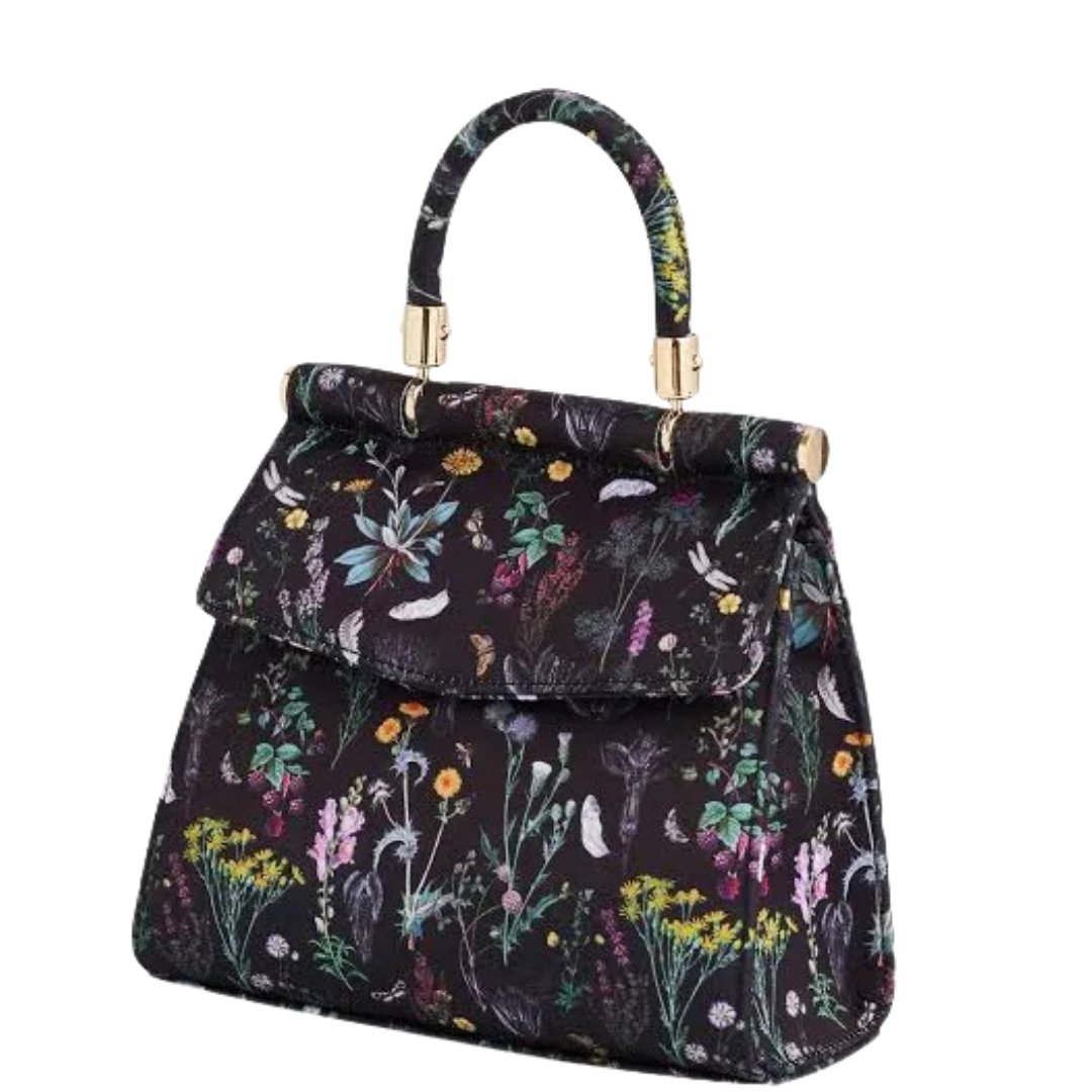 Add a touch of charm and elegance to your collection with this stunning black floral print handbag from ShopsMarters. Designed for women who love graceful fashion with a modern twist, this handbag beautifully combines sophistication and vibrant detailing. The rich black base enhances the colorful botanical print, creating a stylish contrast that instantly catches attention.